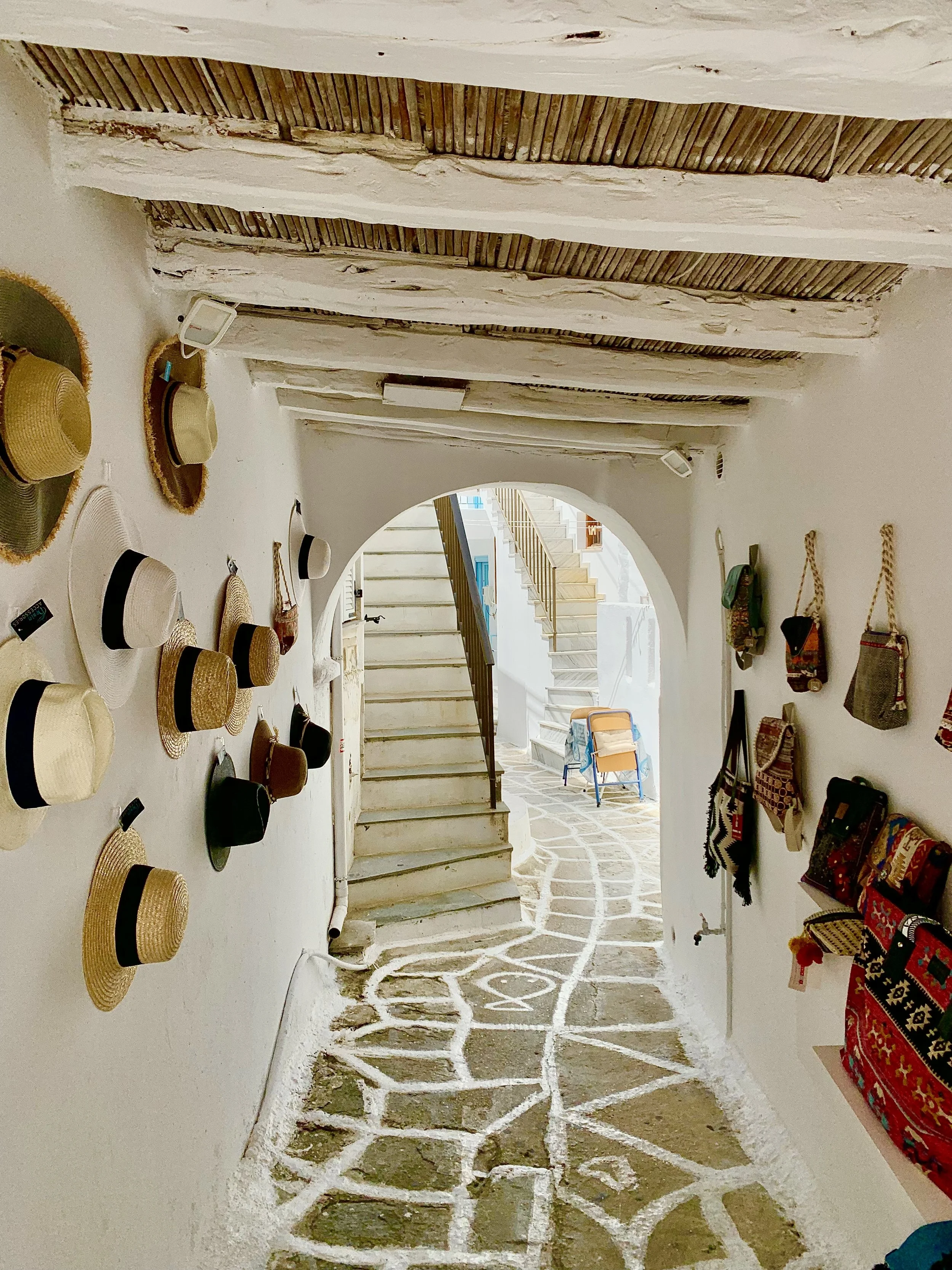 I like to shop. I have shopped in Paris, New York, London, Stockholm, Tokyo, and lots of random places. Rings from Gdansk, baby-Ts from Kaunas, kimonos from Copenhagen, a whole mix of things. I think it is a fabulous thing to buy a little trinket - or even better a box for your trinkets - while on vacation. Articles of clothing, art, tchotchkes, they will always remind you of where you were and it shows a collection of who you have been, where, and when. I might even love to shop. It’s a dangerous habit. However, I have never traveled in order to shop. I never decided to go to Paris because I was in need of a yellow jacket, I just happened upon one in Merci and said Oui. It was easy peasy! So, when I stumbled into a fabulous store in Athens, it was not a surprise. I wasn’t even surprised when I happened upon a cute boutique in Paros, and then it struck me as I walked into my fifth cute super shoppable store. The usual hit or miss business was nowhere to be seen, it was just consistent bangers, and I am a vegetarian! Somewhat shocking to me, the shopping in the Greek Isles served consistently good shopportunities.