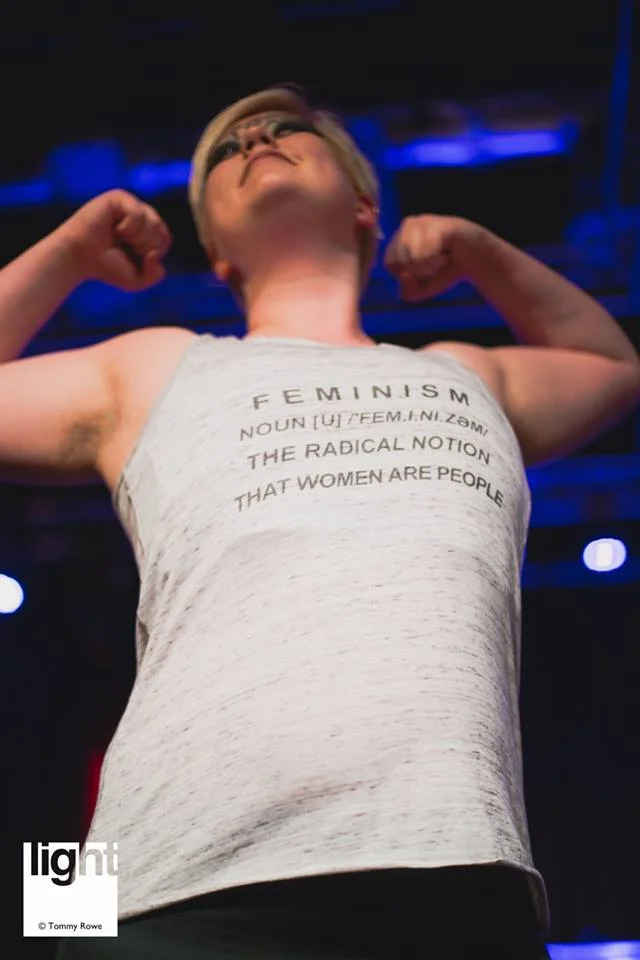 Their motto and ethos stemmed to the sponsorship clothing, each brand containing a message that aligns with the concept and ideals of LABEL. Neon Moon Lingerie one of the designers presented, prides itself as a body positive feminist lingerie brand, revolutionizing an industry that is notorious for sexualizing and objectifying women. GFW; Clothing without labels, another brand showcased, creates gender neural clothing that promotes self expression and masculinity and femininity across its spectrum. The diversity in brands continued with the designer Capr Style, which creates handmade adaptive clothing for those with additional support needs and Bibico, a brand creating easy-to-wear clothing made from natural materials by producers they know and trust. Each article of clothing represented a message, and was matched with the models own clothing emphasizing the ethos of self expression and individuality. I felt this was epitomized when a model walked down the runway with a defiant smile wearing one of the sponsors t-shirt that stated boldly in large letters "Its OK If you disagree with me", from the model to the clothing, the meaning of LABEL was perfectly encompassed.