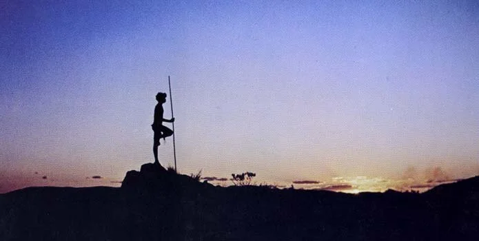 Faced with a life-or-death choice, the 1971 film Walkabout is a starry-eyed survival tale saturated with post-Edenic exile and the loss of innocence. The title itself is a reference to an Aboriginal rite of passage in which a young boy spiritually transitions into adulthood. The persona of the land is also framed as a “hallucinogenic” spirit, calling back to the Dreamtime. Curiously, the characters are all unnamed, which in turn shifts focus to their environment. They are placed on the same level as the nature that surrounds them: Sun, Moon, Boy, and Girl are balanced individuals all operating in the same domain.